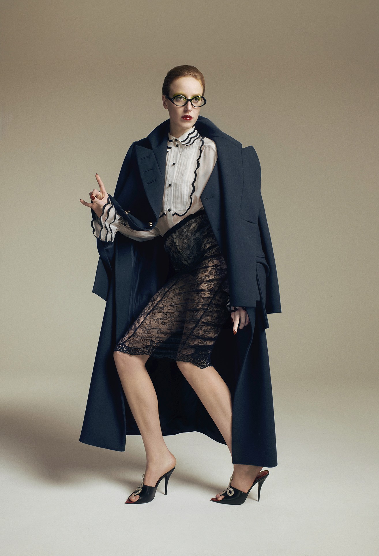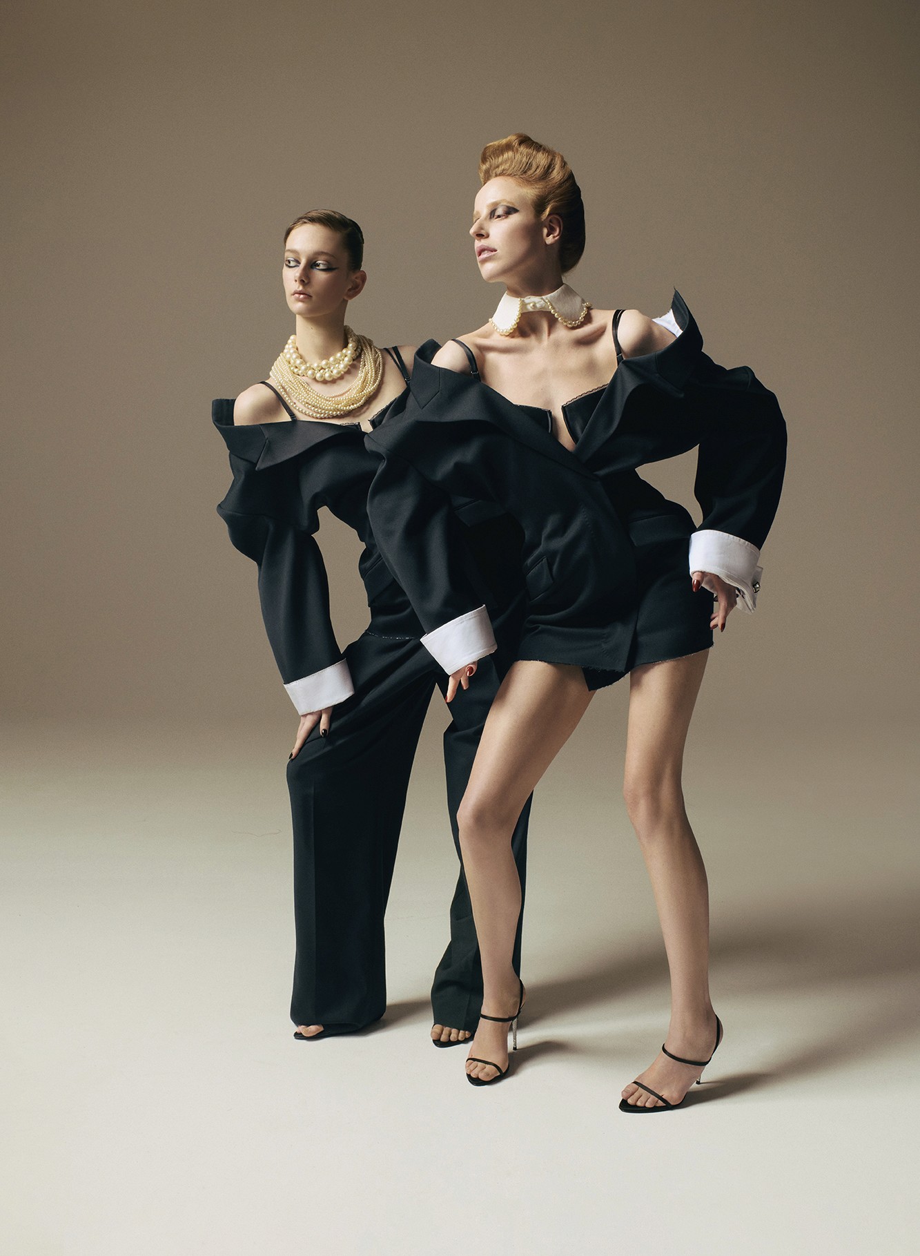 Sharp silhouettes, poised attitudes, and precise lines shape a graphic femininity, balanced between structure and movement.